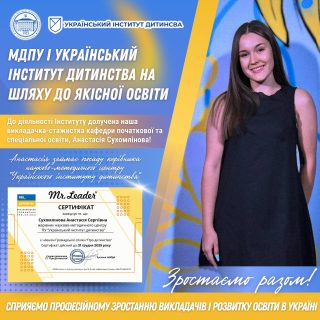 👩🏼💼💐Нам приємно відзначити, що до діяльності Інституту долучена наша викладачка-стажистка кафедри початкової та спеціальної освіти, Анастасія Сухомлінова. Вона займає посаду керівника науково-методичного центру “Українського інституту дитинства”!