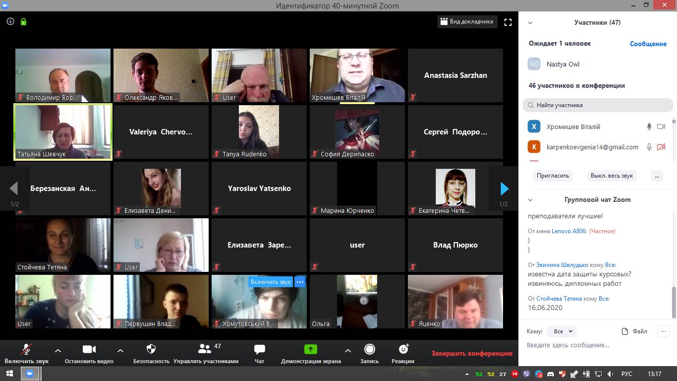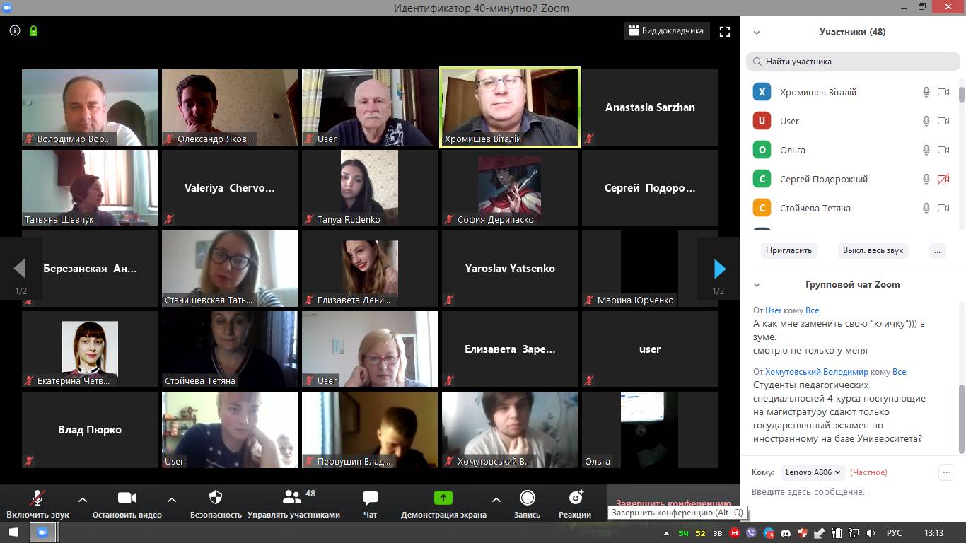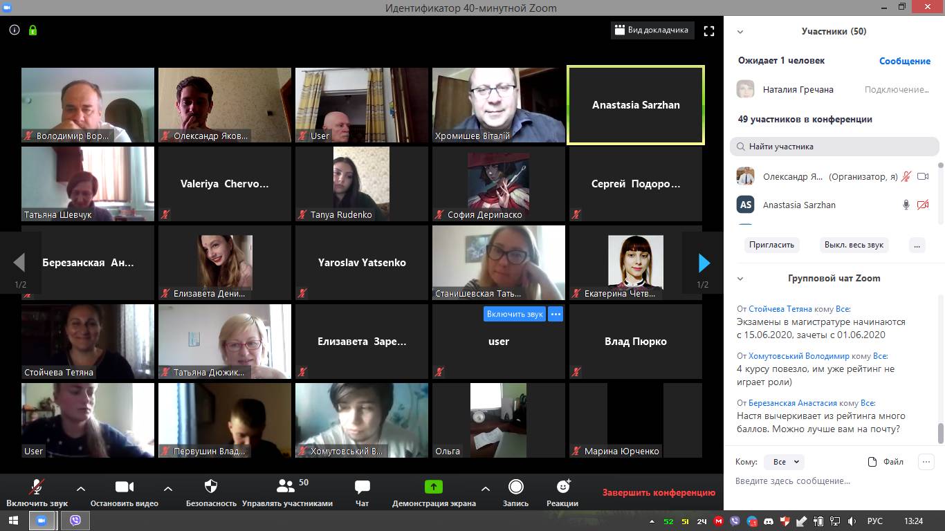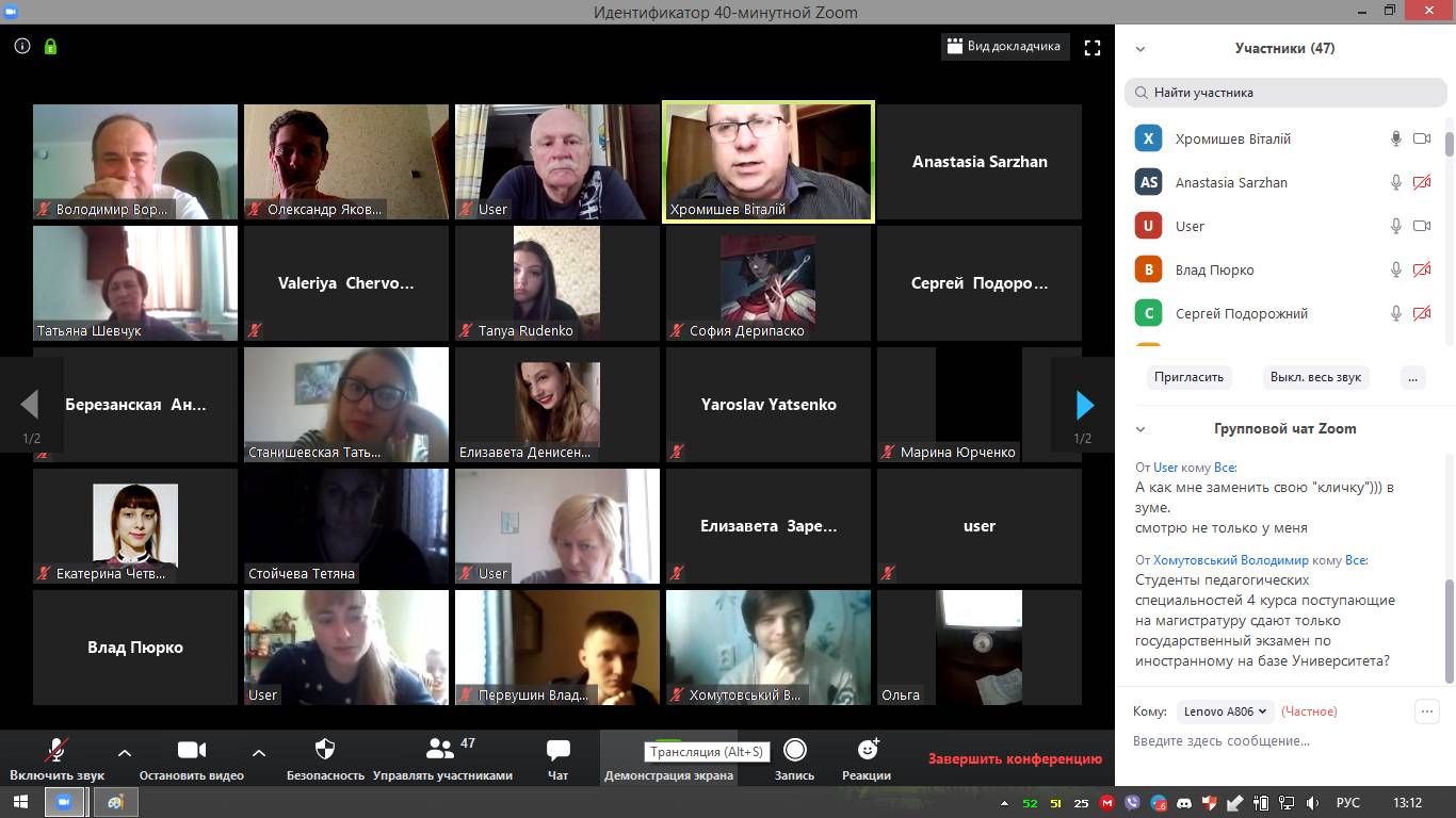 06.05.2020 р. на базі платформи Zoom було організовано зустріч деканату та завідувачів кафедрами хіміко-біологічного факультету зі студентами хіміко-біологічного факультету.