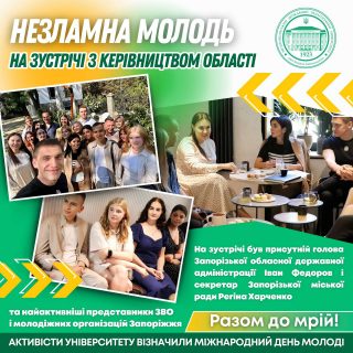 Вчора, у Міжнародний День молоді було організовано зустріч голови Запорізької обласної державної адміністрації Івана Федорова та секретаря Запорізької міської ради Регіни Харченко з найактивнішими представниками вишів і молодіжних організацій.