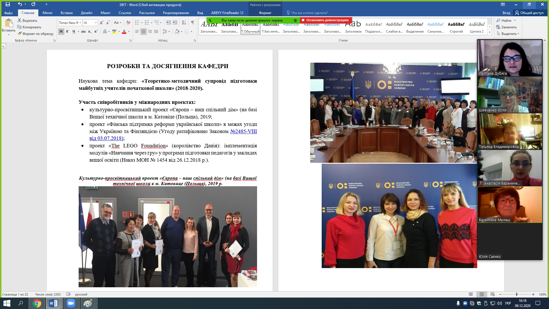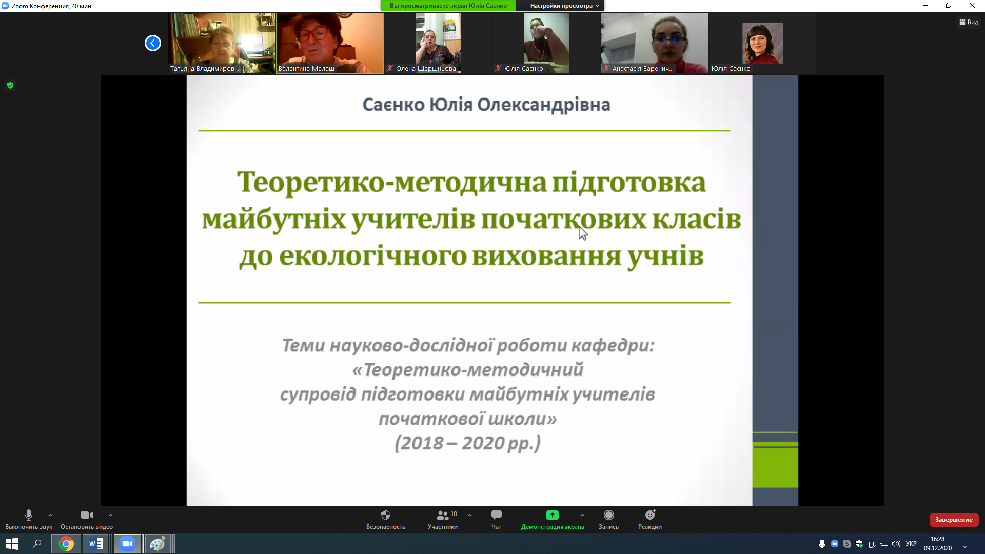 09 грудня 2020 року кафедрою початкової освіти проведено звітну конференцію за темою науково-дослідної роботи «Теоретико-методичний супровід підготовки майбутніх учителів початкової школи» (2018 – 2020 рр.).
