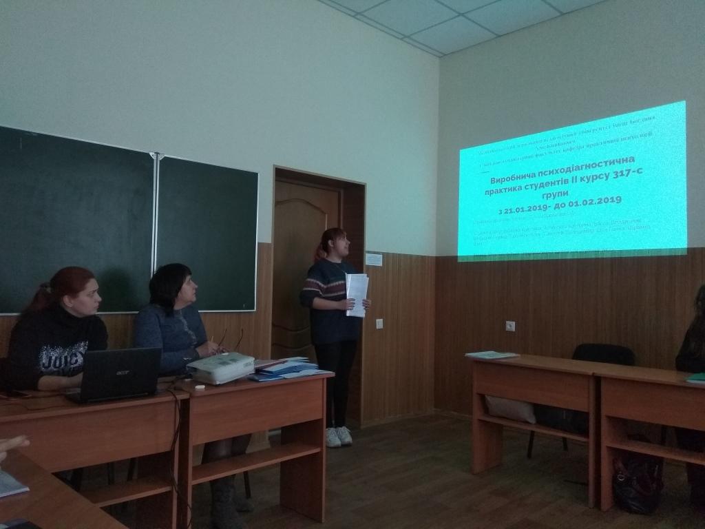18 лютого 2019 р. відбулась звітна конференція за результатами проходження здобувачами вищої освіти 2 курсу Навчально-наукового інституту соціально-педагогічної та мистецької освіти виробничої практики (психодіагностичної), методистами якої були доцент Царькова О.В., старші викладачі Каткова Т.А. і Варіна Г.Б.